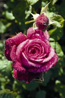 Совершенно особенный сорт! Цветки диаметром 5-8 см, густомахровые (как у старинных английских роз), как бы разделены на 4 части, бархатистые, интенсивного бордово-красного цвета, в серединке светлеют спустя некоторое время. Аромат розы, экстремально сильный. Очень привлекательно выглядят кусты с длинными ниспадающими побегами. Для этого сорта рекомендуется подбирать хорошо освещённое место. Сорт награждён золотой медалью «Лучшая ароматная роза 2002 года» на международной выставке в Риме.