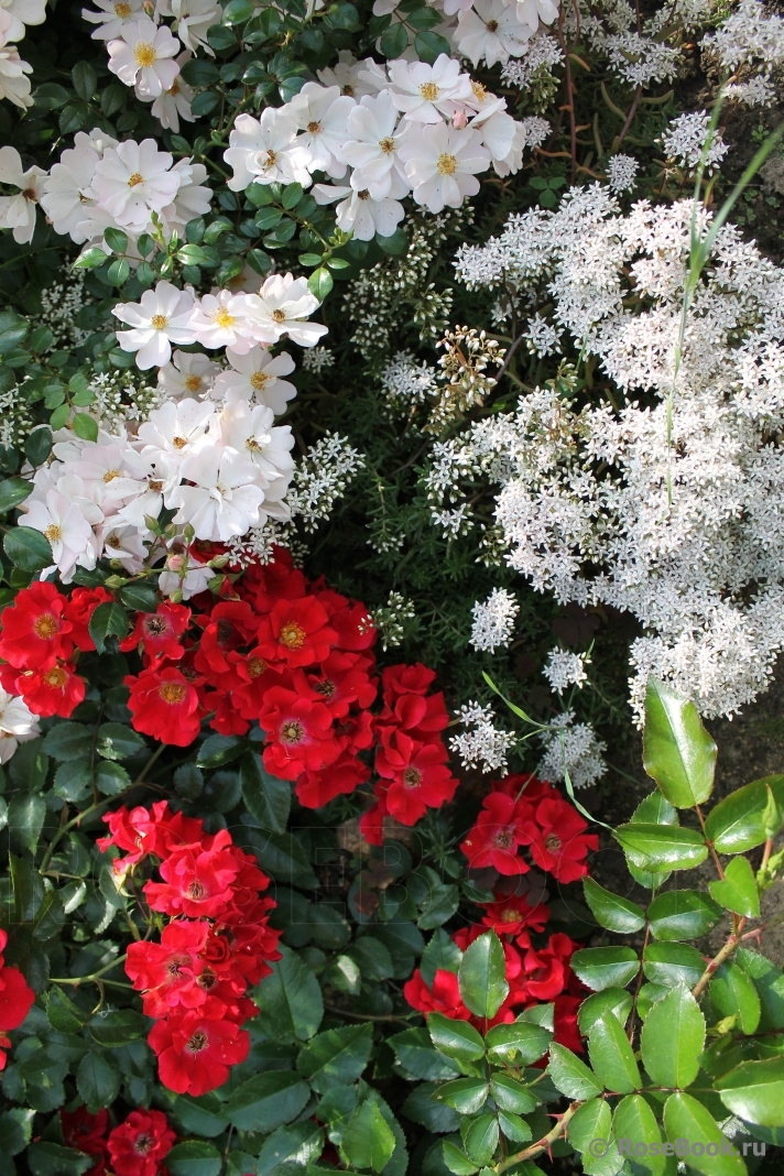 И вот здесь - белый компаньон у розы это хто? Розы почвопокровные Me**deo и Samme**rabend