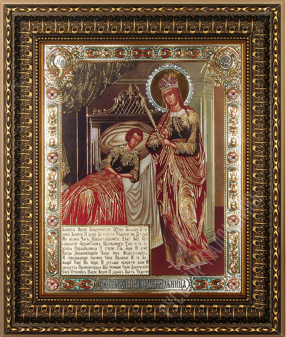Молитва пред иконою Пресвятыя Богородицы "Целительница" Приими, о всеблагословенная и всемощная Госпоже Владычице Богородице Дево, сия молитвы, со слезами Тебе ныне приносимыя от нас недостойных раб Твоих, ко Твоему цельбоносному образу пение возсылающих со умилением, яко Тебе самой зде сущей и внемлющей молению нашему. По коемуждо бо прошению исполнение твориши, скорби облегчаеши, немощным здравие даруеши, разслабленныя и недужныя исцеляеши, от бесных бесы прогоняеши, обидимыя от обид избавляеши, прокаженныя очищаеши и малыя дети милуеши: еще же, Госпоже Владычице Богородице, и от уз и темниц свобождаеши и всякия многоразличныя страсти врачуеши: вся бо суть возможна ходатайством Твоим к Сыну Твоему, Христу Богу нашему. О всепетая Мати, Пресвятая Богородице! Не престай молитися о нас недостойных рабех Твоих, славящих Тя и почитающих Тя, и поклоняющихся со умилением пречистому образу Твоему, и надежду имущих невозвратну и веру несумненну к Тебе, Приснодеве преславней и непорочней, ныне и во веки веков. Аминь.