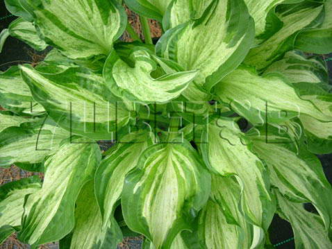 Длинные, широко-копьевидные, крученые листья. Центр листа белый с зелёными штрихами, с нерегулярным, широким, тёмно-зелёным окаймлением. В течение сезона центр становится с оливково-зелёными пятнышками и полосками. Цветки лавандовые с пурпурными полосками, июль. Лучшее место посадки - полутень.