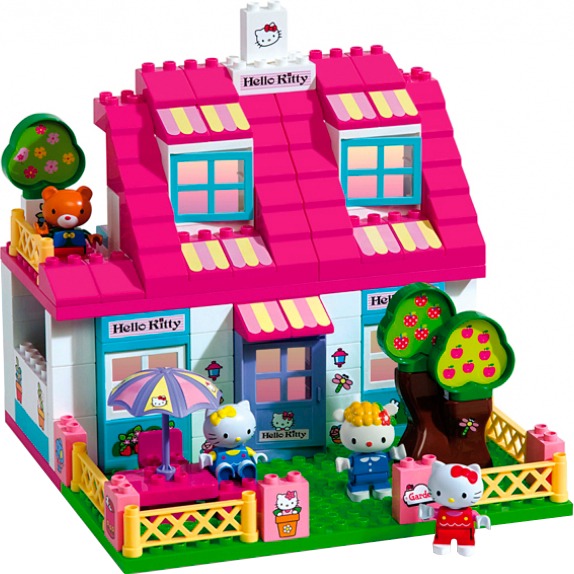 «Дом Hello Kitty» — конструктор для малышей от 1,5 до 5 лет. Создайте свой собственный домик Hello Kitty с этим большим набором строительных блоков, состоящим из 129 элементов (в том числе, таких деталей как деревья, зонтик от солнца и даже дымоход). Высококачественный игровой набор с элементами для конструирования по принципу «лего» выполнен в приятной цветовой гамме с доминированием розового цвета в стиле Hello Kitty, поэтому он понравится любой маленькой девочке. Конструктор Хелло Китти «Дом» совместим со всеми наборами Unico Plus серии Hello Kitty. Собрав несколько наборов вместе, ваша малютка самостоятельно сможет построить целый город с магазинами, торговым центром, железной дорогой, красивыми домиками, фермой с животными, город, в котором живёт модница кошечка и все её друзья, популярные персонажи Sanrio, входящие почти в каждый, даже самый небольшой, набор.