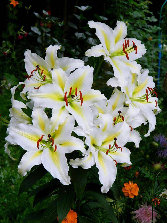 лилия Коко сса , ОТ-гибрид, высота 105см, цветок белый с жёлтыми лучиками от центра до 1/3 лепестка, диаметр 25см