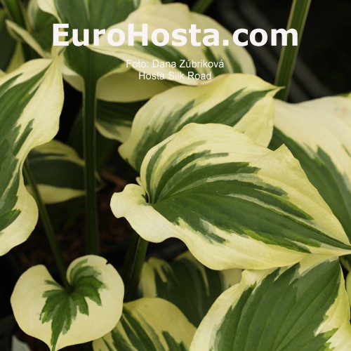 Sil"k Ro"ad -"Шелковый путь' , автоперевод: "характеризуется своей уникальной пестрой листвой с глубокими зелеными центров и широкими кремово-желтого до кремово-белыми полями, содержащих около половины площади листа. Ширина поля в пределах от 2 до 6 см с краю листа, составляющем приблизительно от одной половины площади листа."