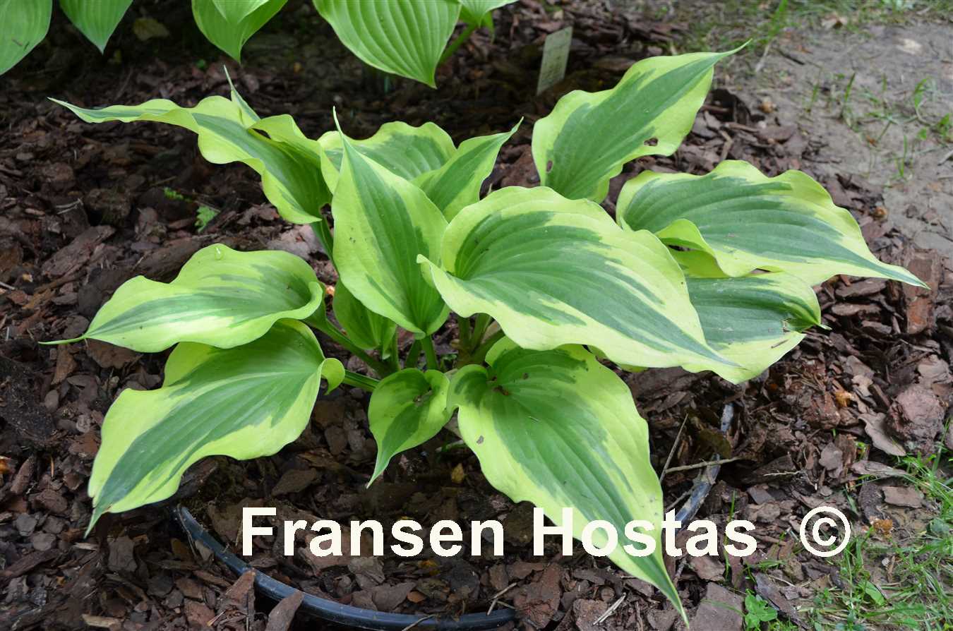 Hosta 'Ivory Coast' серо-зеленые листья с широкой желтой каймой, плотные, не повреждаются слизнями