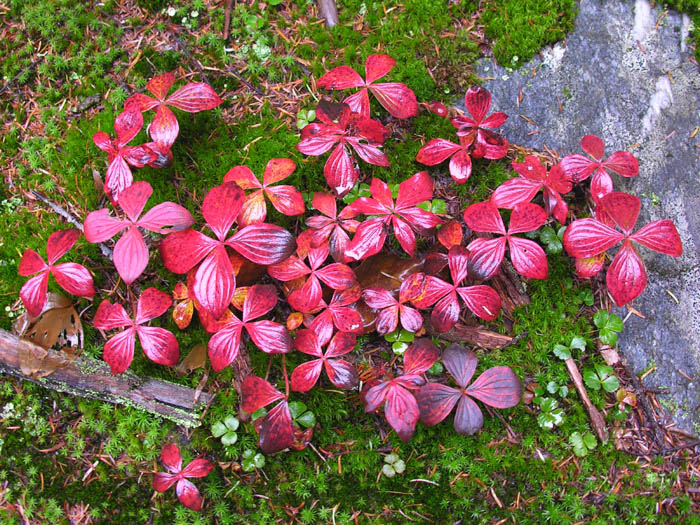 "почвопокровный горизонтально стелющийся медленнорастущий полукустарник с декоративным цветением и съедобными плодами -  листопадный или вечнозелёный (в тёплые зимы) низкий, карликовый, высотой 10-20 см и до 1,5 м шириной, образующий эффектные ковры. Плодоносит с середины августа до конца сентября. Ягоды Дерена / Кизила канадского немного мучнистые, липкие, сладковатые на вкус, полезные, с высоким содержанием пектина, их можно добавлять для загущения при варке варенья и в выпечку.