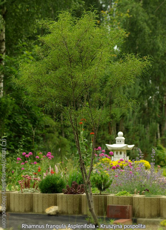 омпактный кустарник до 2м. Теневыносливый, нетребовательный к почве, засухоустойчивый. Цветение в июне. Листва очень красивая, нитевидная, с волнистым краем, снизу более светлая. Зимостойкость хорошая. Плоды крушины ядовиты, но данный сорт практически не плодоносит. Зимостойкость: до -40.