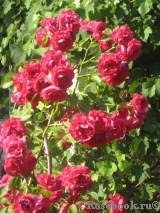 "летом 2013 выдала 3 волны цветения:первая-как положено,усыпана цветами, а две другие-парой отдельных кистей в августе и октябре.Не знала,что однокатки на это способны.Не укрываю ее никогда,просто снимаю с опоры.Но самый главный плюс этого сорта-он у всех наших соседей прекрасно цветет и растет в полной тени.У меня-в полутени от огромной соседской яблони.Самая неприхотливая роза."