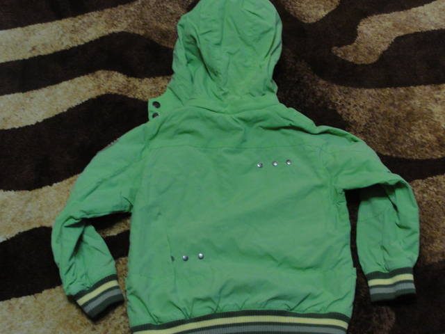 Ветровка р.110 на х/б подкладе, капюшон отстегивается. по спине 42см, рукав от плеча 39см.