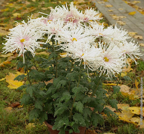 У меня цвели. Брала Хризантема Brandune, укорененные черенки  мультифлора желтую. Зацвели уже в октябре по-моему. Потом они стояли все желтые, а сверху белые снежинки лежали. Не знаю выживут ли. Я их вообще никак не укрыла, с розами пробегала, не успела-снег выпал... А так очень аккуратный красивый шарик.