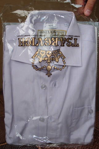 4. Рубашка сиреневая в белую и желтую полоску с длинным рукавом "Tsarevich" (Россия).