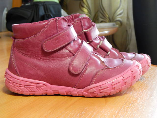 Осенние ботинки для девочки тото, натуральная кожа, нос прорезинен, внутри байка, стелька с супинатором. Размер 29, по стельке 19 см. Цена 400 руб.